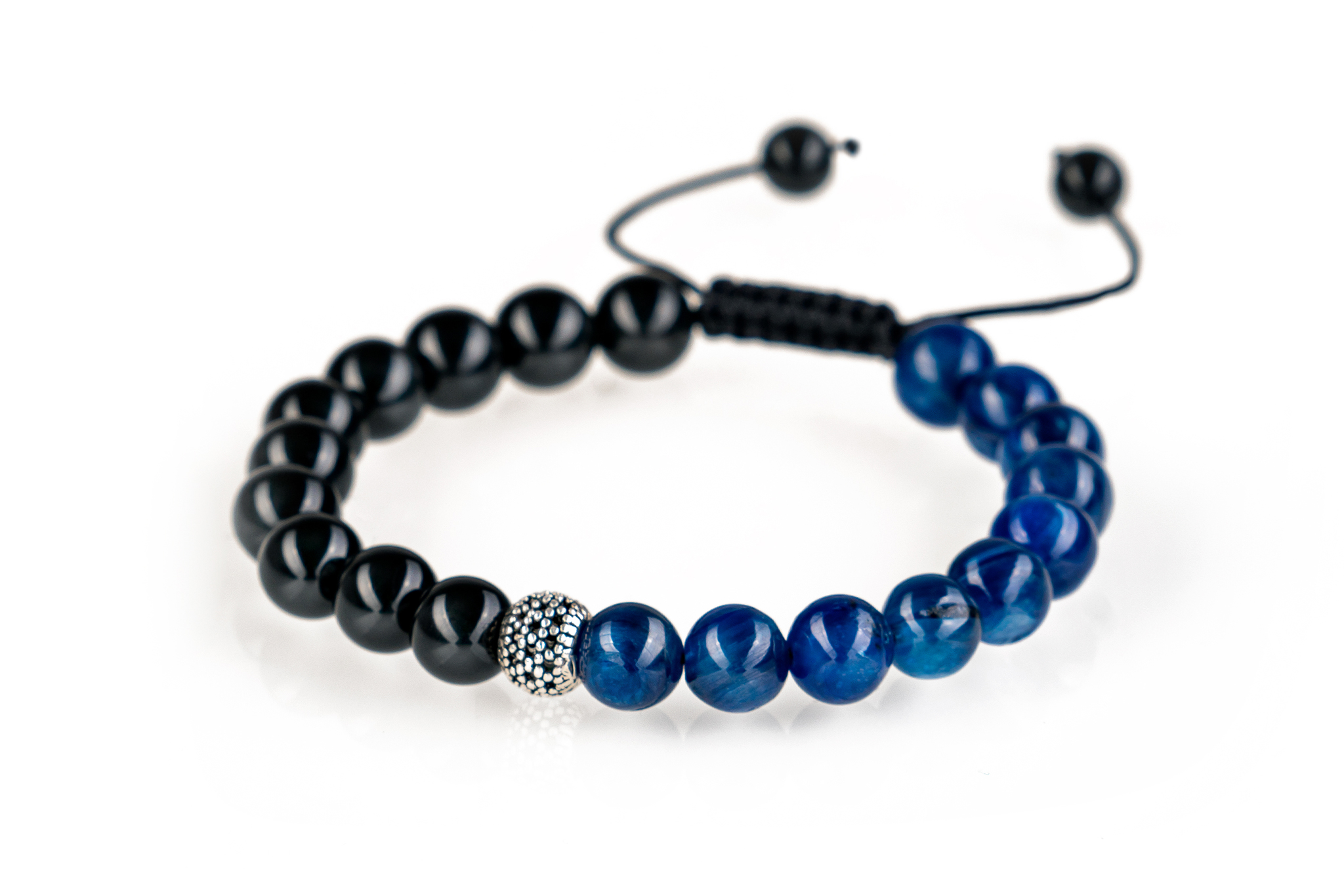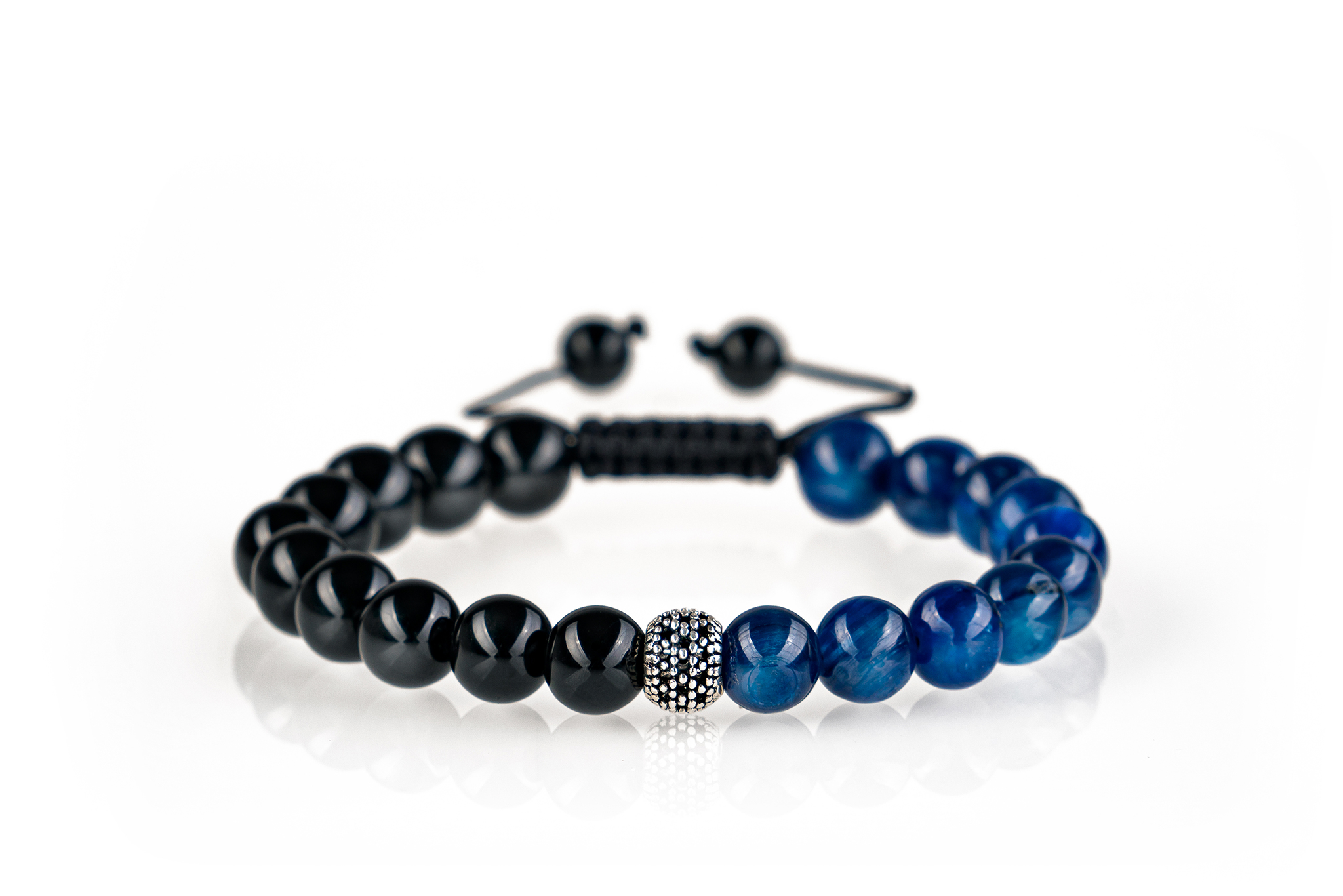 Brățară unisex Stones Silver Charm cu pietre semi prețioase Onix & Kyanit de 8 mm